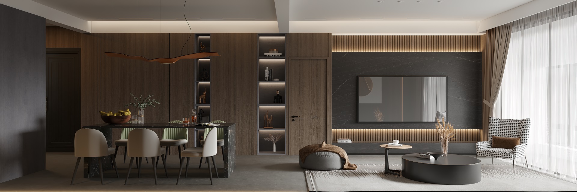 客廳 溫莎金+黑胡桃
