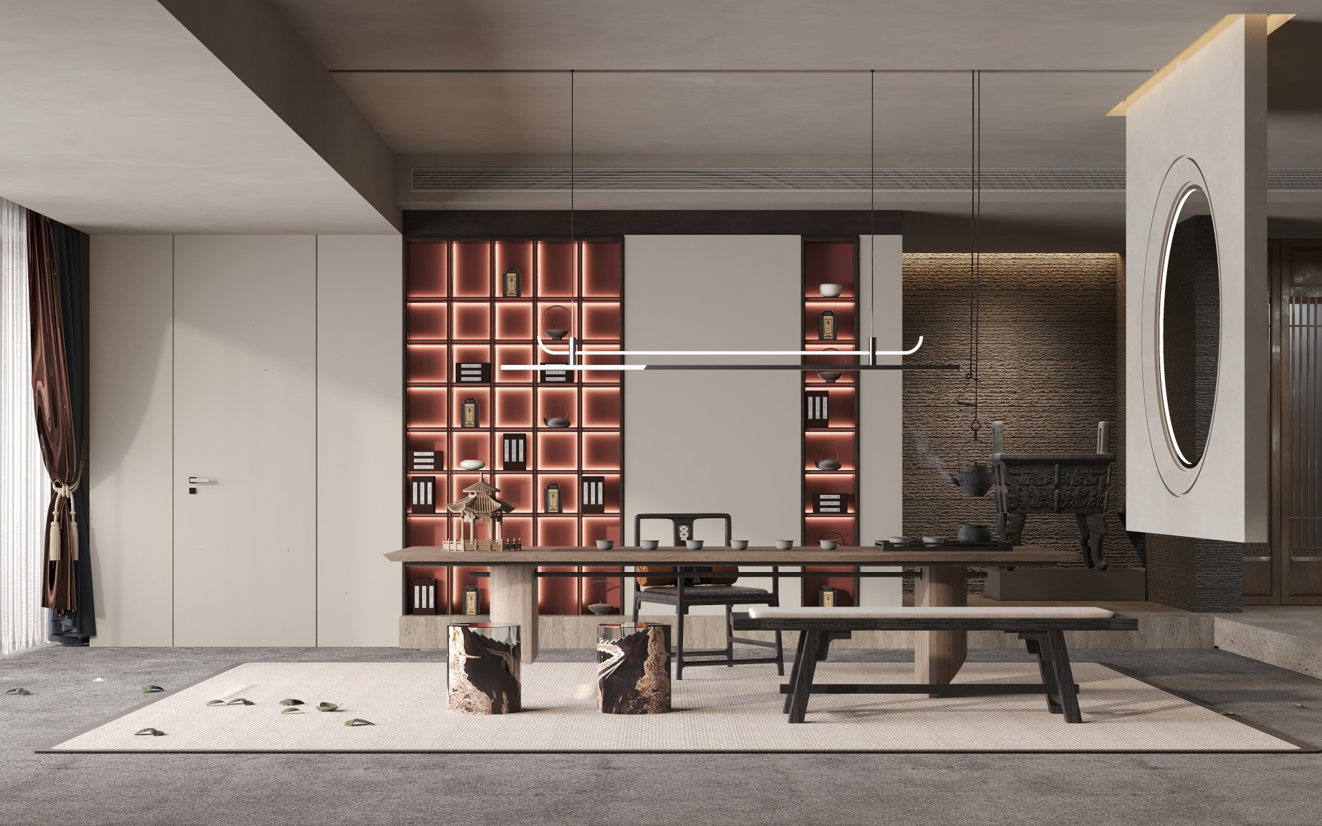 書房 月影灰+鎏金黑線夾齋普爾紅